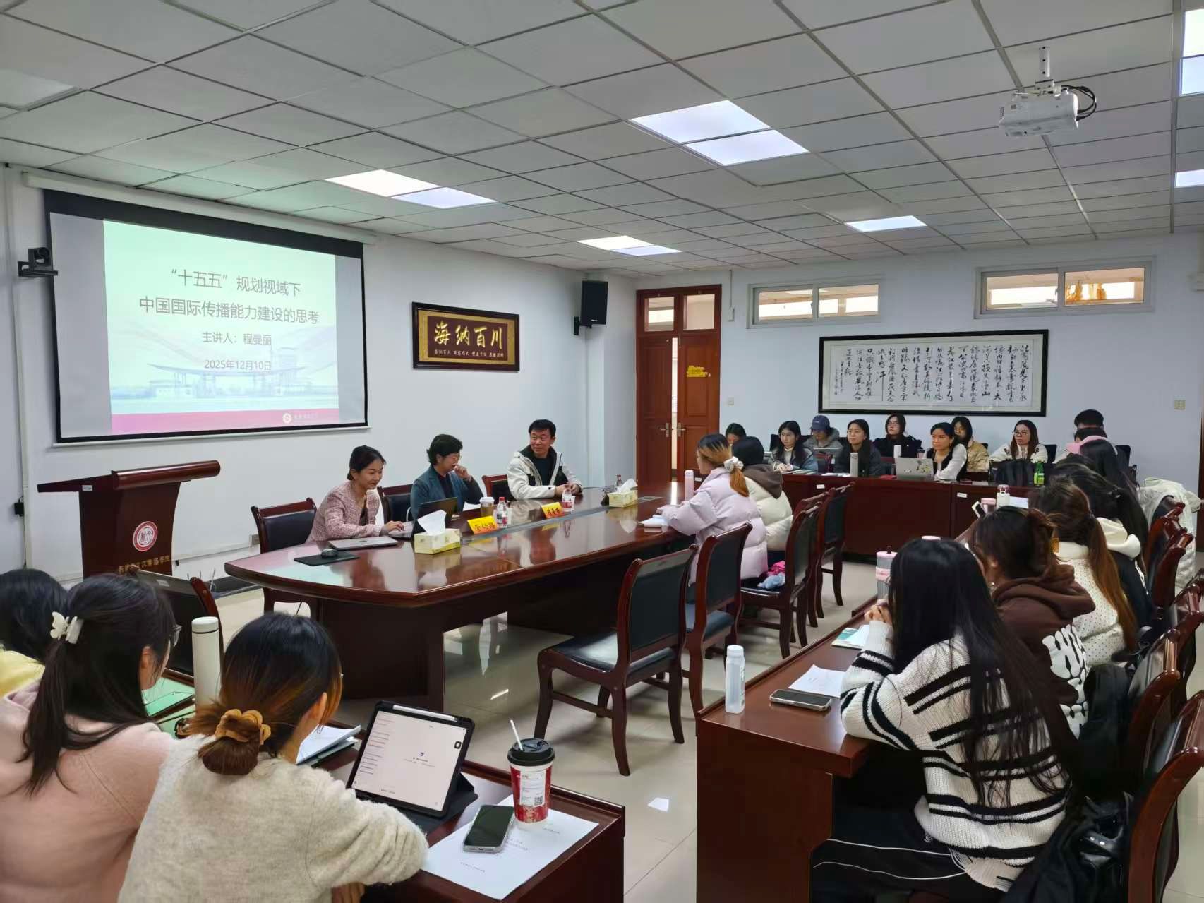 12月10日下午,新闻与文化传播学院在德正楼507会议室举办主题为“‘十五五’规划视域下中国国际传播能力建设的思考”的学术讲座,讲座由北京大学国家战略传播研究院院长,北京大学新闻学研究会执行会长,北京大学新闻与传播学院教授、博士生导师程曼丽主讲。本次讲座由新闻与文化传播学院院长刘泱育和管佖路老师共同主持,我院青年教师以及25级研究生参加了本次讲座。