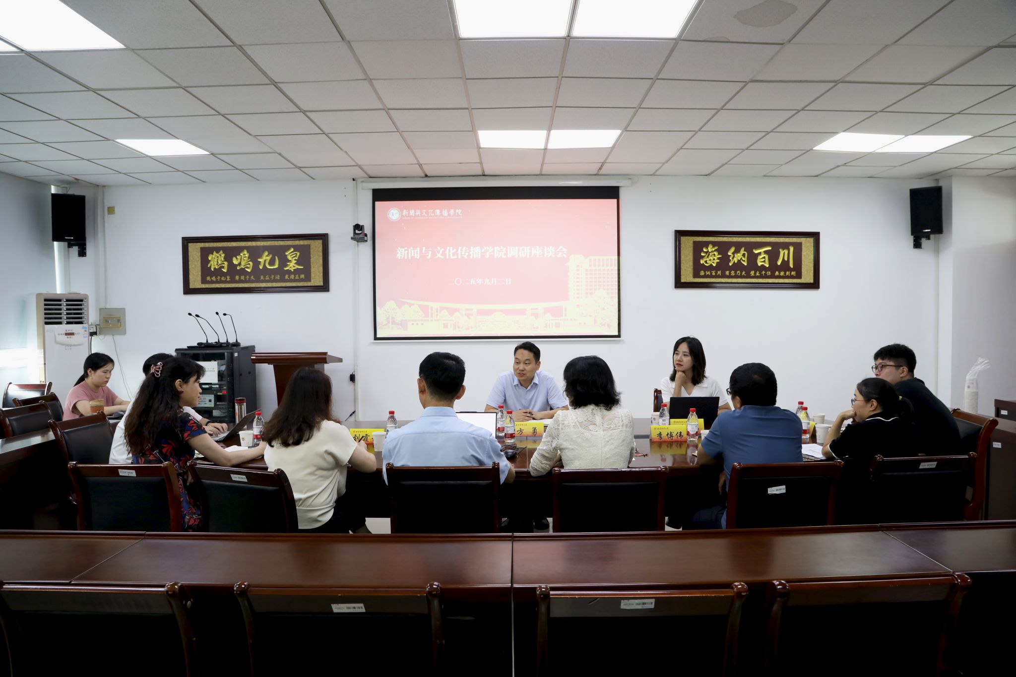 9月2日下午,校党委常委、副校长方勇在仙林校区德正楼507会议室参加新闻与文化传播学院调研座谈会。国际合作与交流处副处长张楠陪同调研,新闻与文化传播学院党政领导班子成员、各系主任参加座谈会。