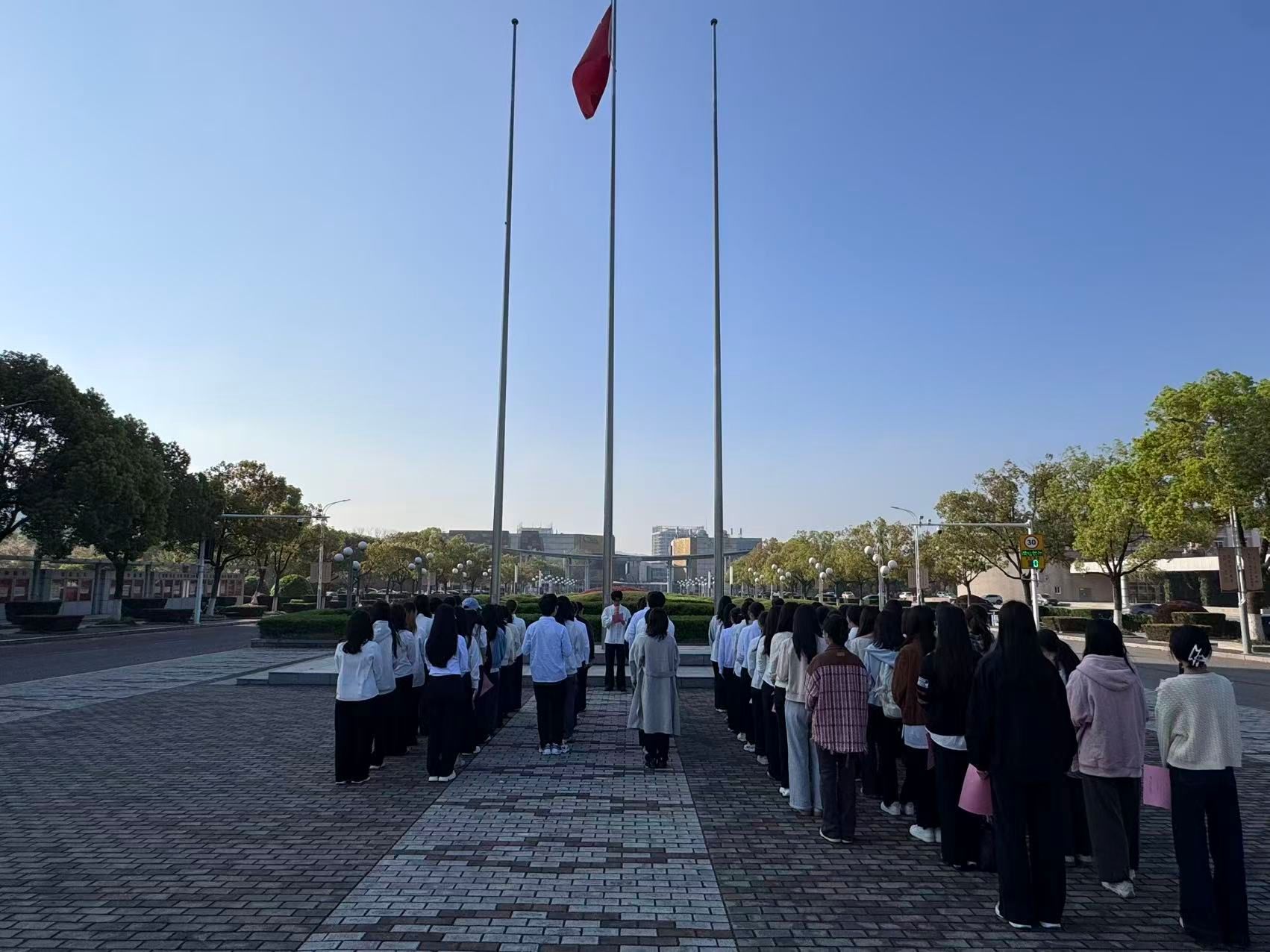 仪式在晨光中正式开始。师生肃立注目,在雄壮的国歌声中,凝视五星红旗冉冉升起。坚定的目光中饱含对祖国的热爱,庄严的敬礼中凝聚着青年的责任。在国旗见证下,深厚的爱国情感在每个人心中激荡。