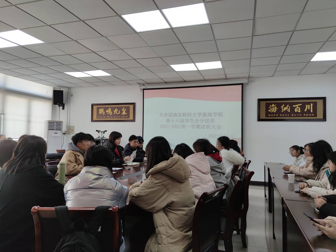 12月2日中午,共青团南京财经大学新闻学院第十六届分团委学生会2021年度述职大会在德正楼507会议室召开。新闻学院分团委书记李晞老师、院学生会主席团成员、各部门部长以及部员代表出席了本次大会,关思远同学主持了本次述职大会。