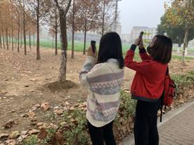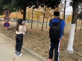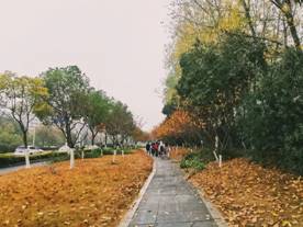 上午10点,同学们在学校南门集合,出发前往南京邮电大学,10点20左右抵达目的地。同学们越往校园内走就越发现南邮的秋色丝毫不逊色于南财,也是那么的充满诗意,大家陶醉于面前的景色,都情不自禁的拿起手机、相机拍照。