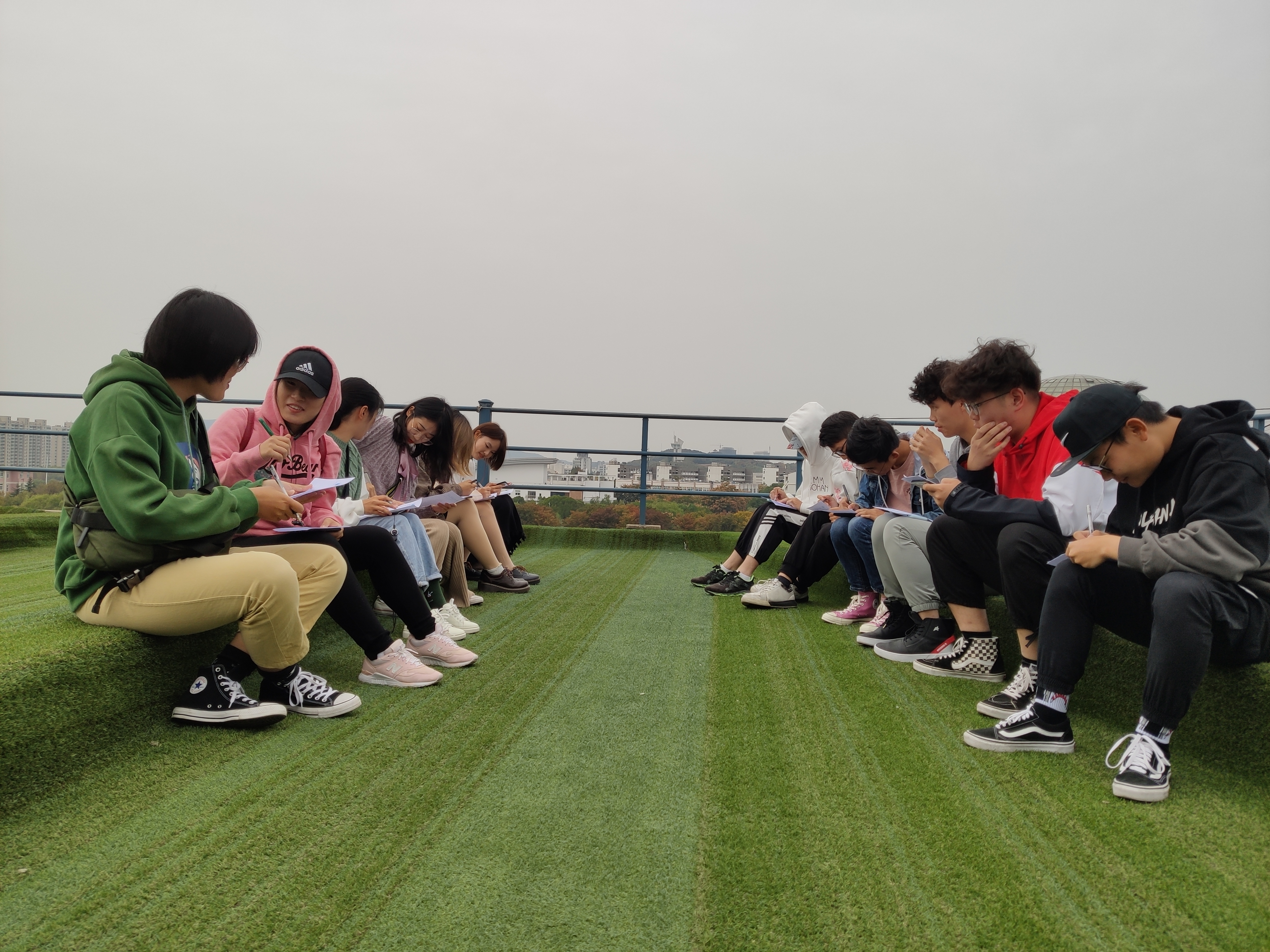 虽然前一天晚上的一场小雨让气温骤降,但第二天同学们还是早早地来到了专三草坪,参加本次活动。