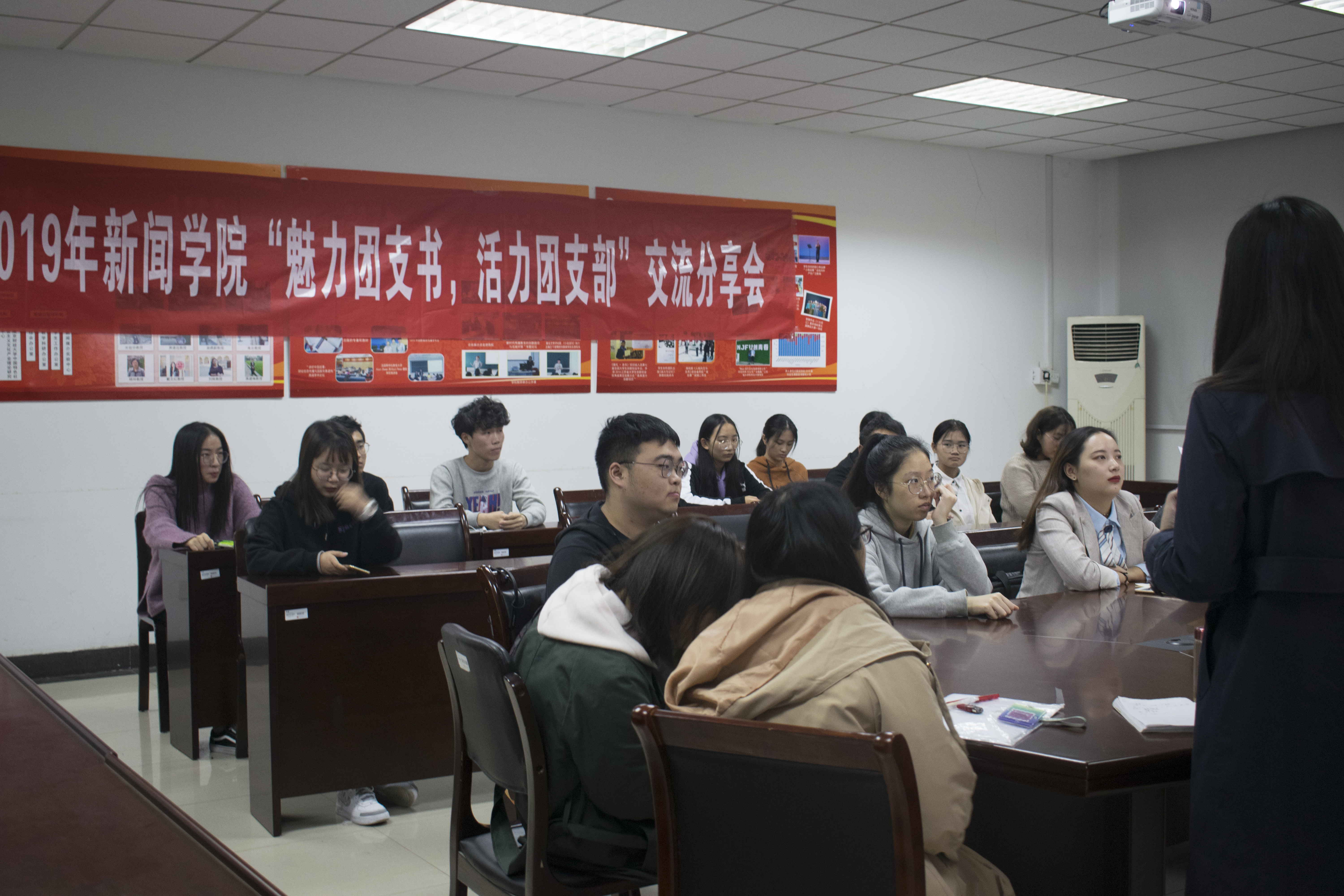 11月7日晚新闻学院团支部在仙林校区德正楼五楼会议室举办团支书交流分享会,会议邀请了新闻学院分团委书记孙启老师,以及国际经济与贸易专业的团支书蒋李婧与徐季如同学。
