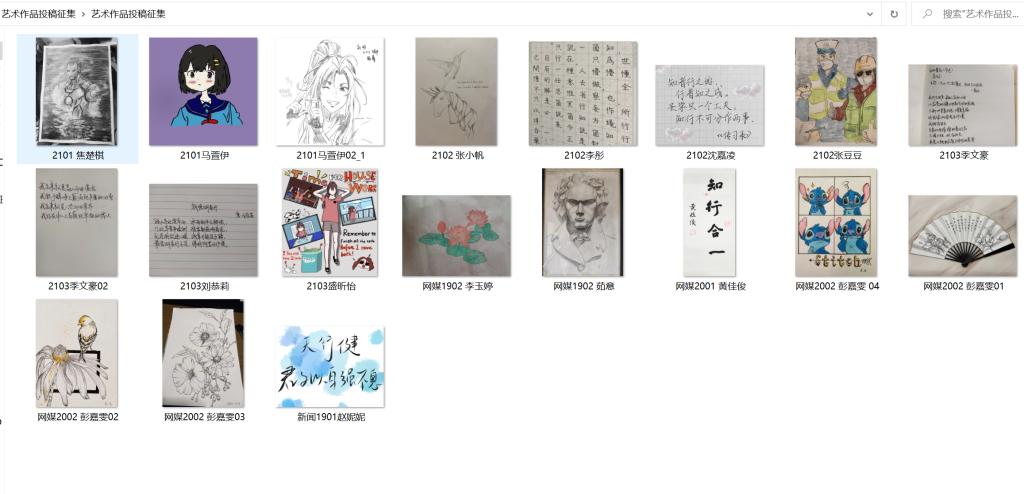 活动以文字、图画为基础,同学们发挥个人艺术天赋和特长,开展了充满正能量和时代感的文艺活动。我们收到了“图画中国”、“翰墨飘香,立字立人”等艺术创作的投稿,水彩、油画、素描、临摹等各式的画作,还有楷书、硬笔、艺术字等各样的书法。在同学们的笔下,我们看见莲花摇曳、看见巍巍高山、看见漫威宇宙,看见二次元的小天地;我们学习张桂梅先生所创“我生来就是高山而非溪流”的誓词;我们徜徉在泰戈尔笔下的自然风光,又领略钱塘湖畔春色渐浓……