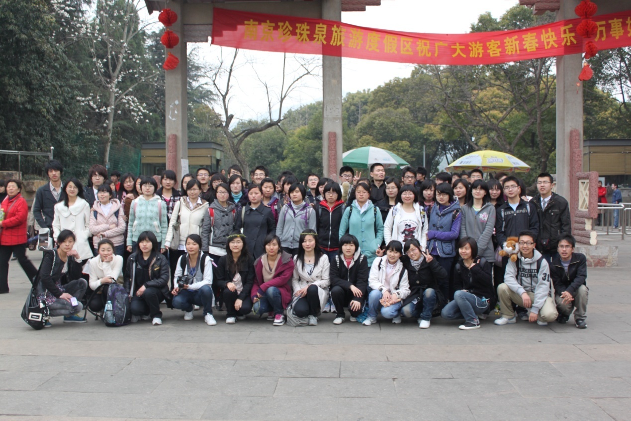2011年3月19日,南京财经大学新闻学院10届的同学们一早出发,经过大约1个小时的车程,到达了南京珍珠泉旅游风景区,开始了他们为期一天的春游生活。此次活动是新闻学院10届同学的首次春游,在院里领导和辅导员的鼓励和支持下,10届2个班的班委积极策划和组织,动员学生,迎来了此次活动的成功举行。